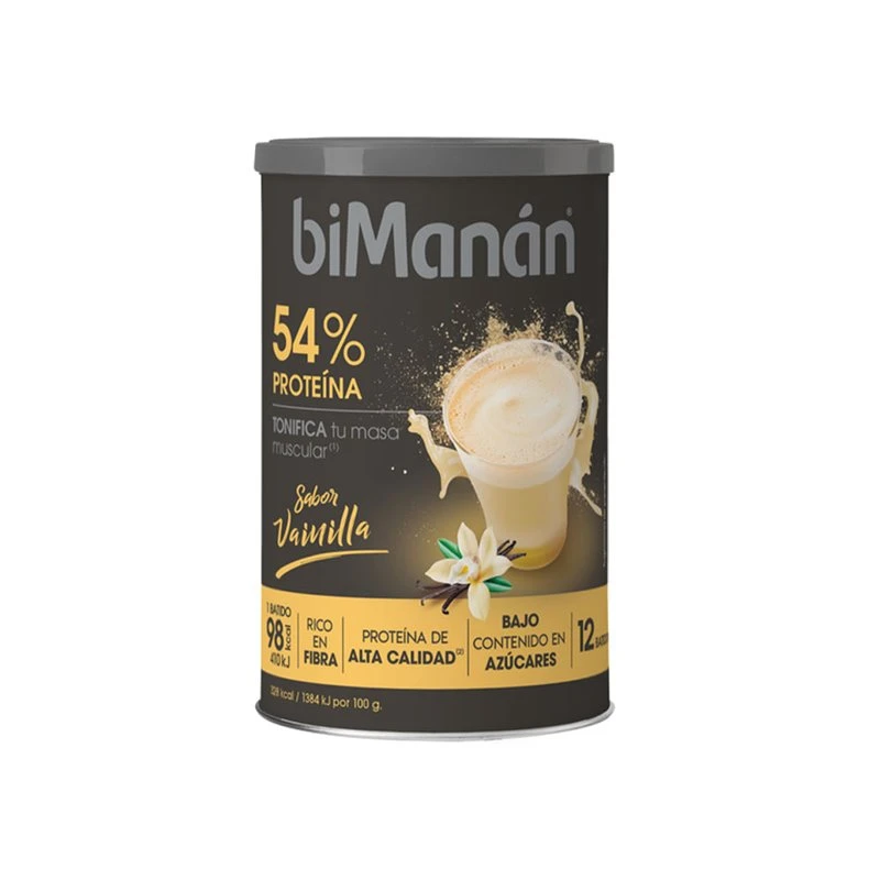 El Bimanan Batido Proteína Sabor Vainilla es ideal para quienes buscan tonificar y aumentar su masa muscular de manera efectiva. Este batido hiperproteico aporta 16 gramos de proteínas de alta calidad por porción, esenciales para el desarrollo y mantenimiento de la masa muscular, además de ser bajo en calorías con solo 98 kcal por batido.