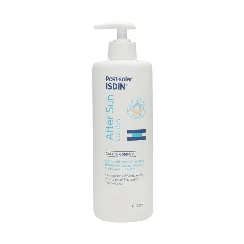 Calma e hidrata tu piel Isdin Loción After Sun ayuda a calmar, refrescar y prolongar el bronceado. Ofrece tras su aplicación un efecto calmante y refrescante gracias al contenido de su fórmula en Mentol y Camomila.Consigue hidratar la piel irritada por la exposición solar, reparando intensamente gracias a su contenido en bisabolol, mental y camomila. Isdin Loción After Sun evita la descamación de la piel, a la vez que prolonga el bronceado.