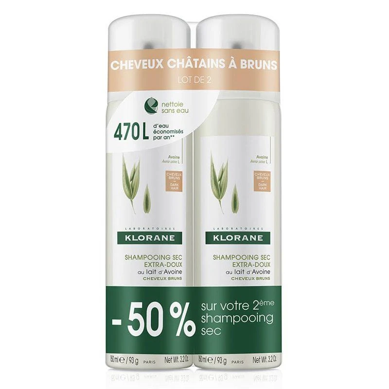 Klorane Champú en Seco Ultra-Suave con Leche de Avena Spray Lote de 2 x 150 ml – Tipo: Cabello castaño a negroestá formulado con leche de avena suavizante y protectora, de ciclodextrinas y polisacáridos naturales (polvos micronizados con una capacidad de absorción lipofílica muy alta).