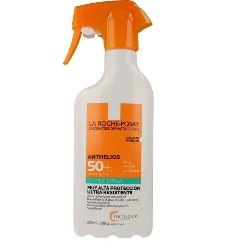 La Roche Posay Anthelios Family Spray Fotoprotector solar para toda la familia tanto para niños como para adultos muy resistente al agua, sudor y arena. Acción antioxidante contra IR-A. Textura con acabado no graso, no pegajoso. Sin perfume. Sin marcas blancas.