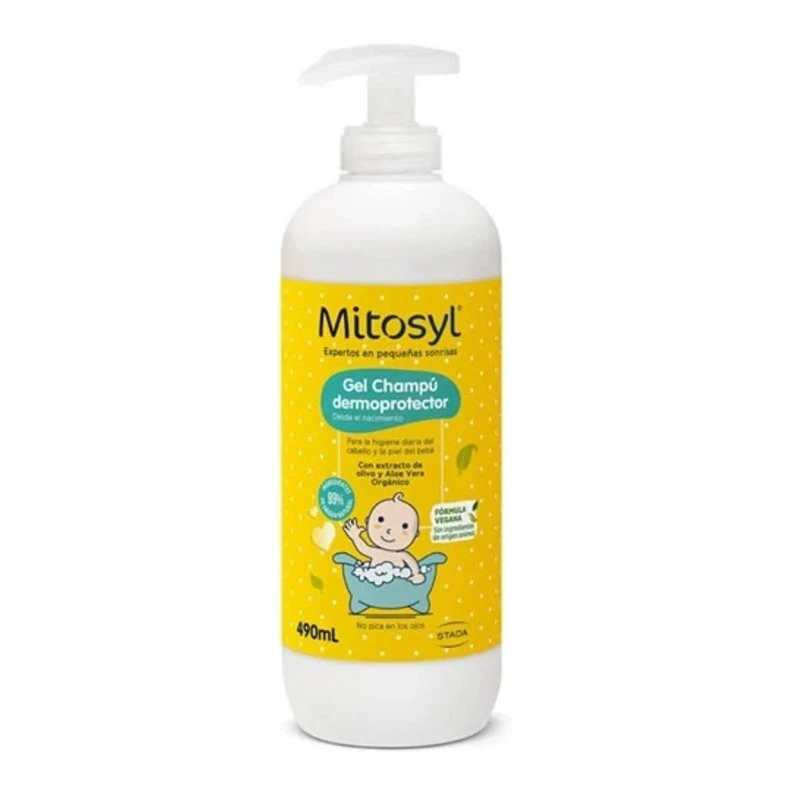 El Mitosyl Gel Champú Dermoprotector 490 ml es la solución perfecta para la higiene diaria del bebé, ofreciendo una limpieza suave y profunda tanto del cuero cabelludo como de la piel. Especialmente formulado para bebés desde su primer baño, este champú gel es adecuado para pieles sensibles y atópicas, garantizando un cuidado dermatológico óptimo. Con ingredientes de origen natural como el extracto de avena y pantenol, nutre e hidrata la piel y el cabello, dejándolos suaves, sedosos y protegidos. Sin parabenos ni colorantes artificiales, es una elección segura y eficaz para proteger la delicada piel del bebé.