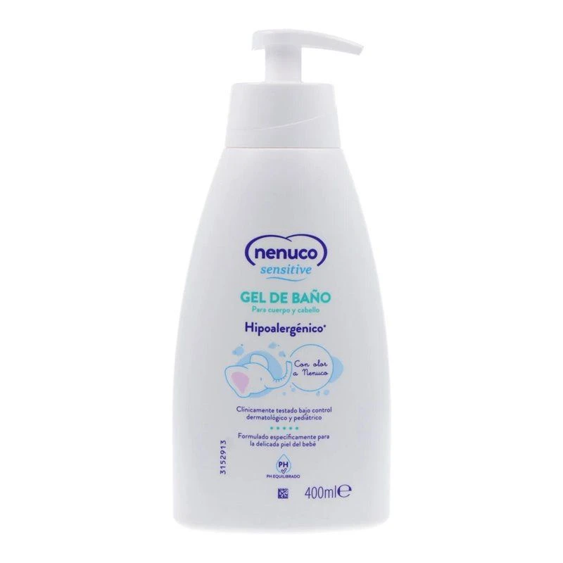 Nenuco Gel de Baño Sensitive 400 ml Gel hipoalergénico que limpia, suaviza y cuida la delicada piel del bebé para su cuidado diario. Estimula sus sentidos gracias a su fragancia única y a tus mimos cariñosos. Deja una sensación de piel hidratada desde el primer día.