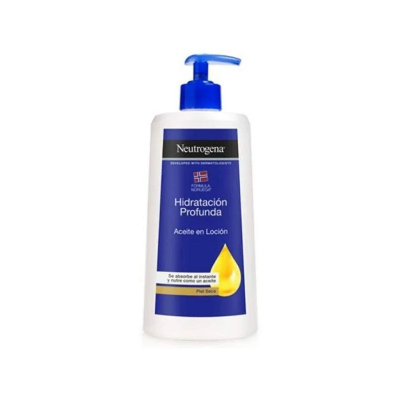 Aceite en loción de hidratación profunda con aceite natural para pieles secas.