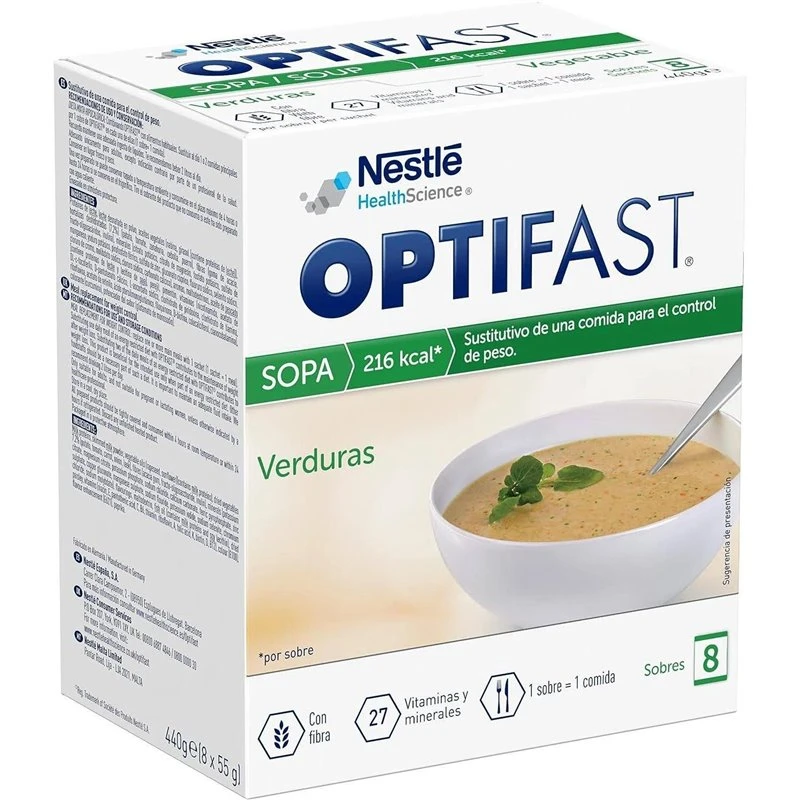 Optifast Sopa de Verduras es la solución perfecta para aquellos que buscan una dieta equilibrada. Cada sobre aporta una mezcla rica en proteínas, fibras y vitaminas. Baja en calorías y grasas, esta sopa no solo es fácil de preparar, sino que también proporciona una sensación de saciedad. Diseñada para cubrir tus necesidades diarias, es la opción ideal para mantener una alimentación controlada y beneficiar tu salud.