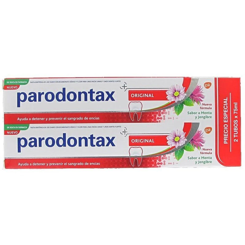Envase ahorro con 2 tubos de pasta dental Parodontax Original la solución natural para la higiene y el cuidado de los dientes y encías.